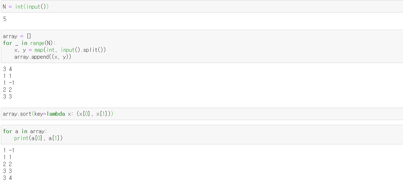 11650번: 좌표 정렬하기