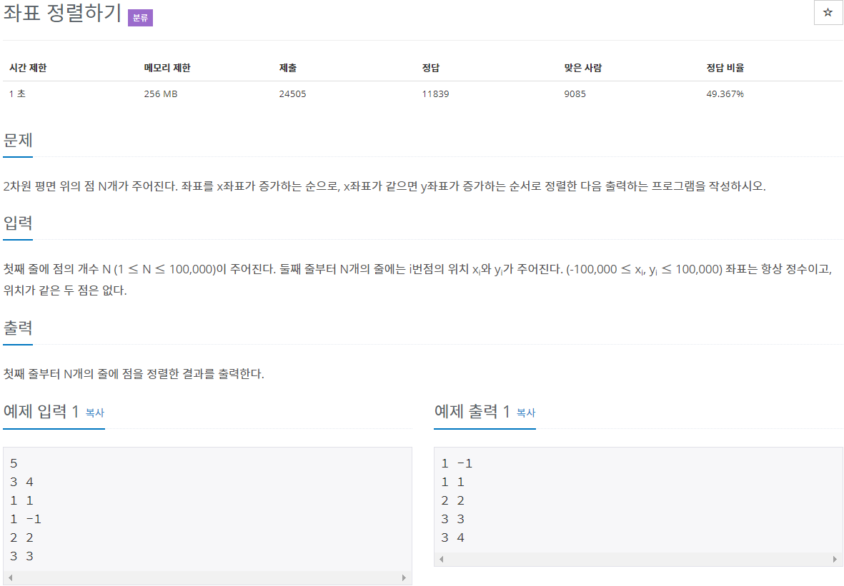 https://www.acmicpc.net/problem/11650