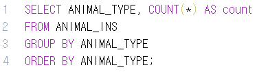 동물 보호소에 들어온 동물 중 고양이와 개가 각각 몇 마리인지 조회하는 SQL문을 작성해주세요.