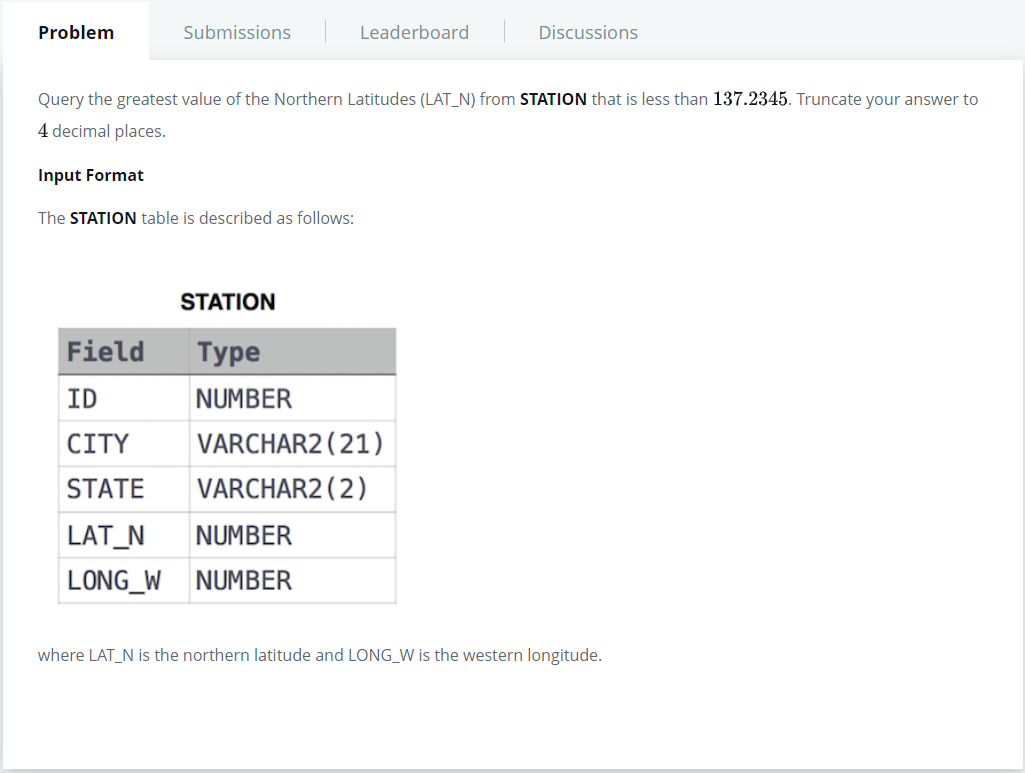 https://www.hackerrank.com/challenges/weather-observation-station-14/problem